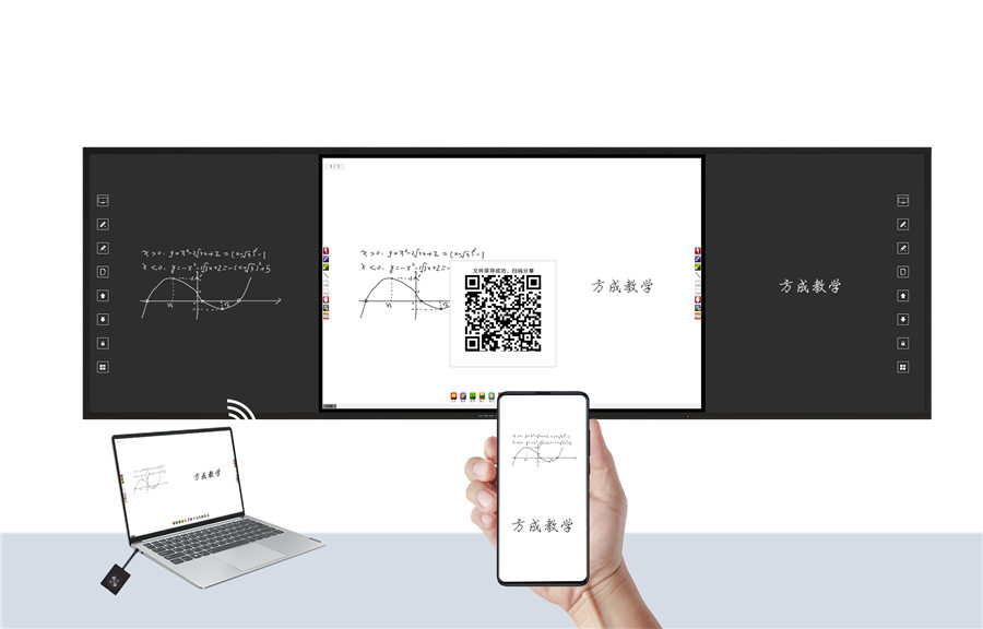 板書教學(xué)五同步: 同步書寫、同步顯示、同步擦除、同步保存、板書記憶雙系統(tǒng)同步,兩側(cè)可同時(shí)書寫,中間同步顯示,過(guò)程書寫無(wú)遮擋,還原板書過(guò)程。