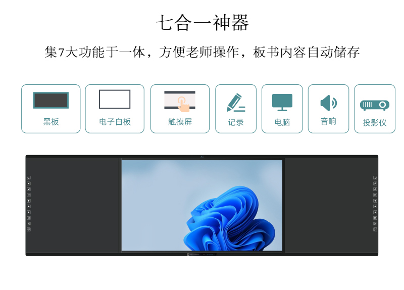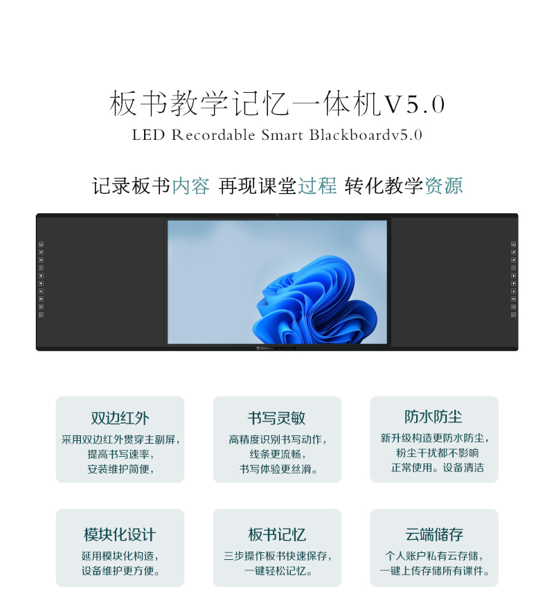板書教學(xué)記憶一體機(jī)-記錄板書內(nèi)容、再現(xiàn)課堂過程、轉(zhuǎn)化教學(xué)資源,板書教學(xué)記憶一體機(jī)集六大產(chǎn)品于一機(jī),在不改變老師板書習(xí)慣的前提下,實(shí)現(xiàn)傳統(tǒng)教學(xué)與多媒體設(shè)備的智慧融合,設(shè)定了有板書記憶、板書同步顯示、板書自動分享等多樣化功能,每一個功能的實(shí)現(xiàn)都賦予了自己的使命。